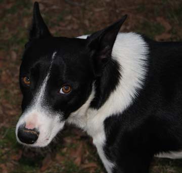 Ace is about 1 yr old and probably a mix between ? and Border Collie. His personality is more that of his mix - he is extremely affectionate, loves people and children, housetrained (never had an accident in the house), neutered, UTD on shots, heartworm neg, on monthly heartworm and flea control. He is very athletic, puppy like and loves to play with my neighbors small dogs and my indoor cats. Ace stands about 19" at the withers and weighs 35lbs. He does know his basic commands, is highly motivated by treats and toys, walks well on a leash and is not dominate. Ace was rescued from the Cullman, AL shelter in early Feb 2010 - he was picked up as a stray and had a borken left front leg