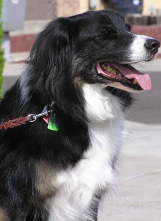 Noah has quite an interesting story. In Fall 2003 he escaped from his backyard in Albuquerque, NM. He was found in a parking lot by the daughter of Larry Cornelius (just blocks from his home). Larry and family tried to find his owner (Becky and Marvin Townds) and his owner desperately tried to find him, but neither was able to connect. So Noah became Cooper and lived with Larry for two years. In August 2005 Larry and family were moving into an apartment and couldn't take Noah with them so they contacted me through a relative I knew that worked at my vet's office. I placed Noah with Suzanne, Duane and Zac Lawrence in Moriarty, NM. They kept him till Feb 2006 and decided he was not the dog for them. So I took him back and he will live the remainder of his life with us.