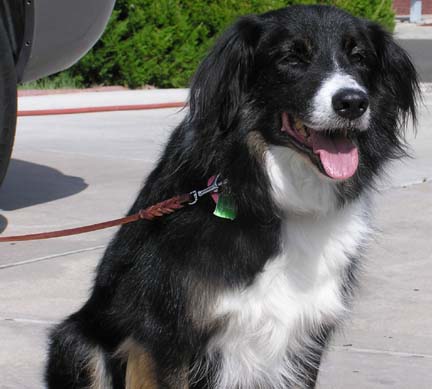 In one hour my phone rang and it was Becky Townds, Noah's mom. She said Noah was a wedding gift to her from her husband and he is a purebred Border Collie. The first few years of his life he lived on a ranch and loved to run. He was named Noah because he loved the water so much. He had grand maul seizures and was on meds till about 4yrs. She couldn't afford meds any longer so took him off meds, did not have any more seizures after that. When they moved to city he kept jumping fence so she had to chain him in the backyard. One day he got away and while doing so pulled his collar off. He did not return. She put ads in paper and did everything one needs to do when a dog is lost. There was no response, she assumed he had been hit by a car. It turns out he was found only about 2 blocks from his home.